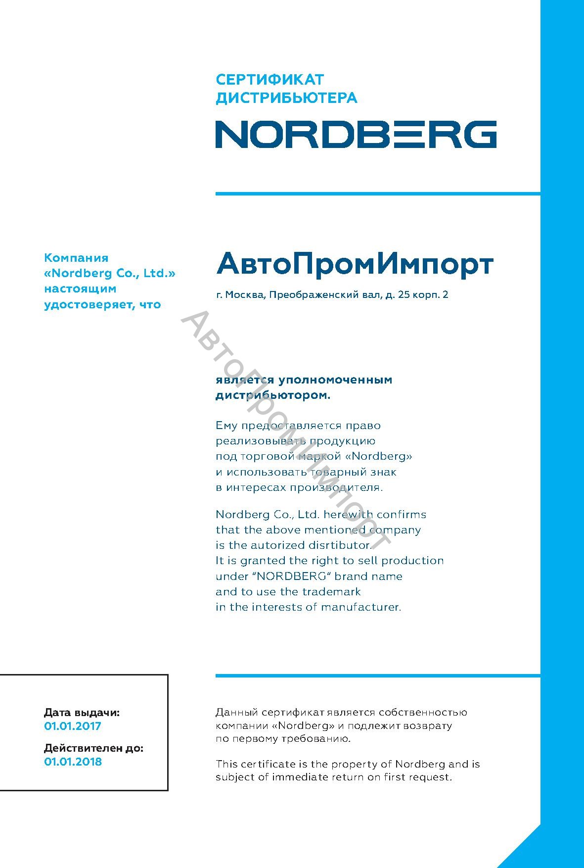 • Отзыв клиента: благодарю команду «АвтоПромИмпорт» за клиентоориентированный грамотный подход. Оборудование было доставлено и введено в эксплуатацию точно в срок, мы идеально уложились в запланированный бюджет. Мы нашли для себя надежного поставщика оборудования, с которым будем работать и далее. ...